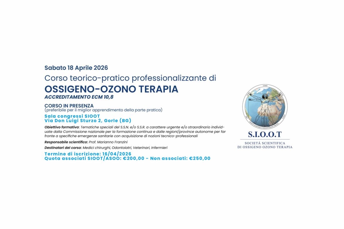 𝐂𝐎𝐑𝐒𝐎 𝐓𝐄𝐎𝐑𝐈𝐂𝐎-𝐏𝐑𝐀𝐓𝐈𝐂𝐎 𝐃𝐈 𝐎𝐒𝐒𝐈𝐆𝐄𝐍𝐎 𝐎𝐙𝐎𝐍𝐎 𝐓𝐄𝐑𝐀𝐏𝐈𝐀 𝐒𝐈𝐎𝐎𝐓 – 𝟏𝟎,𝟖 𝐄𝐂𝐌.Sabato 18 Aprile 2026 ISCRIVITI, Compila il modulo online –> CLICCA QUI Modalità: in presenza presso la […]